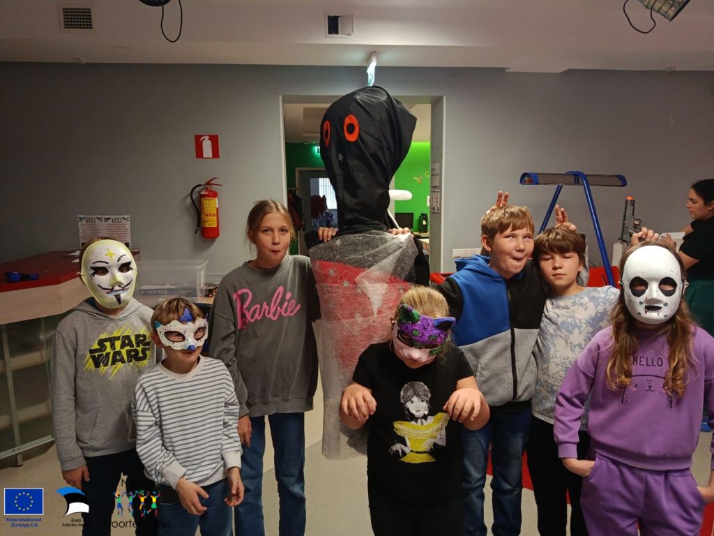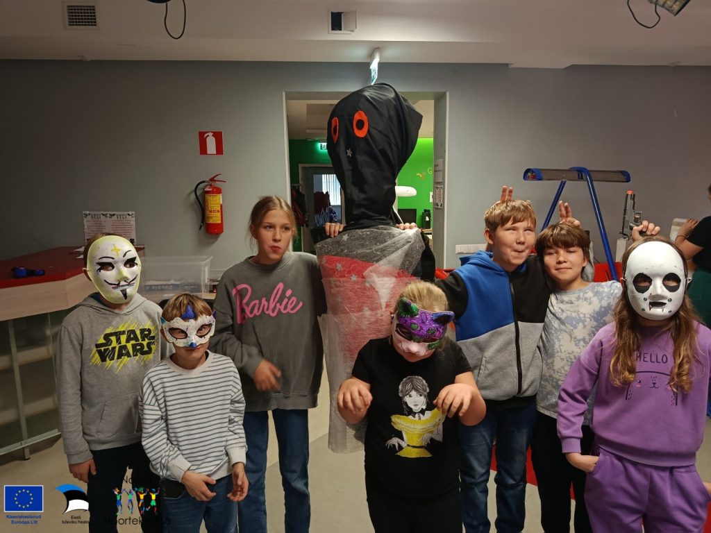Noored valmistasid taaskasutatud materjalidest Halloweeni maske ja osalesid interaktiivses mängus, kus tuli õigesti sorteerida jäätmeid.