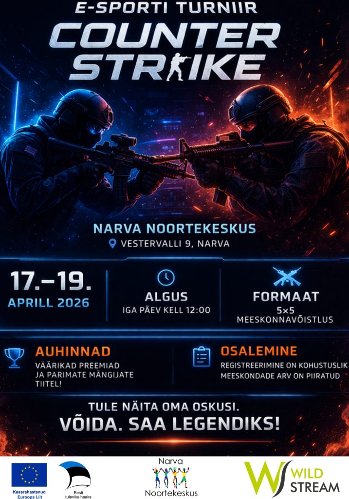 Aprillis korraldame Narva Noortekeskuses pärast kolme kuu pikkuseid treeninguid kolmepäevase Counter-Strike’i turniiri 🏆