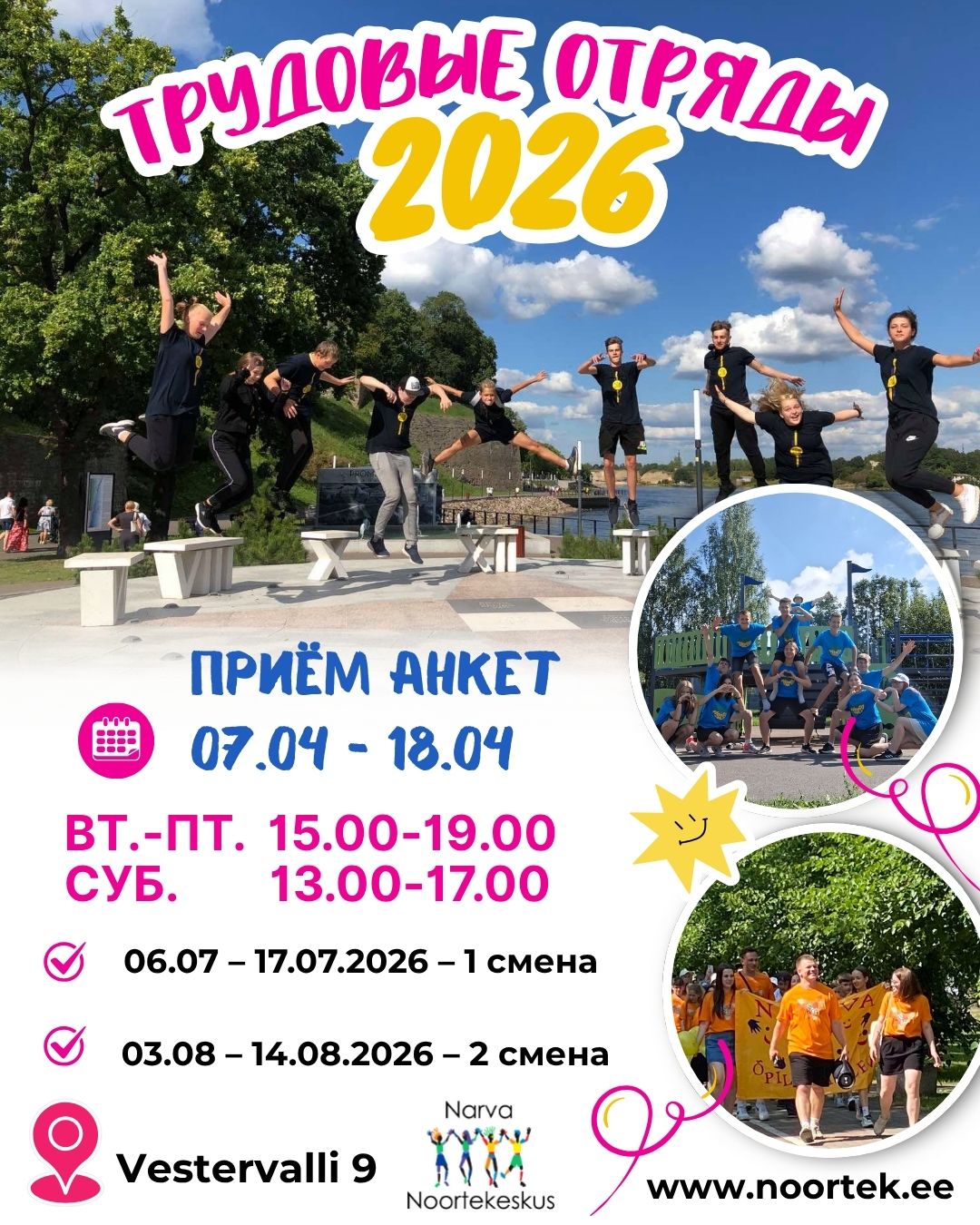 Трудовое летоТРУДОВЫЕ ОТРЯДЫ 2026 Участникам Работа в трудовых отрядах пройдёт в следующие периоды: Приём анкет будет проходить в Нарвском …